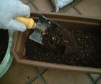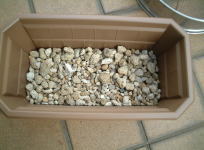 水はけ、土が落ちないようにプランターの底に軽石を敷く